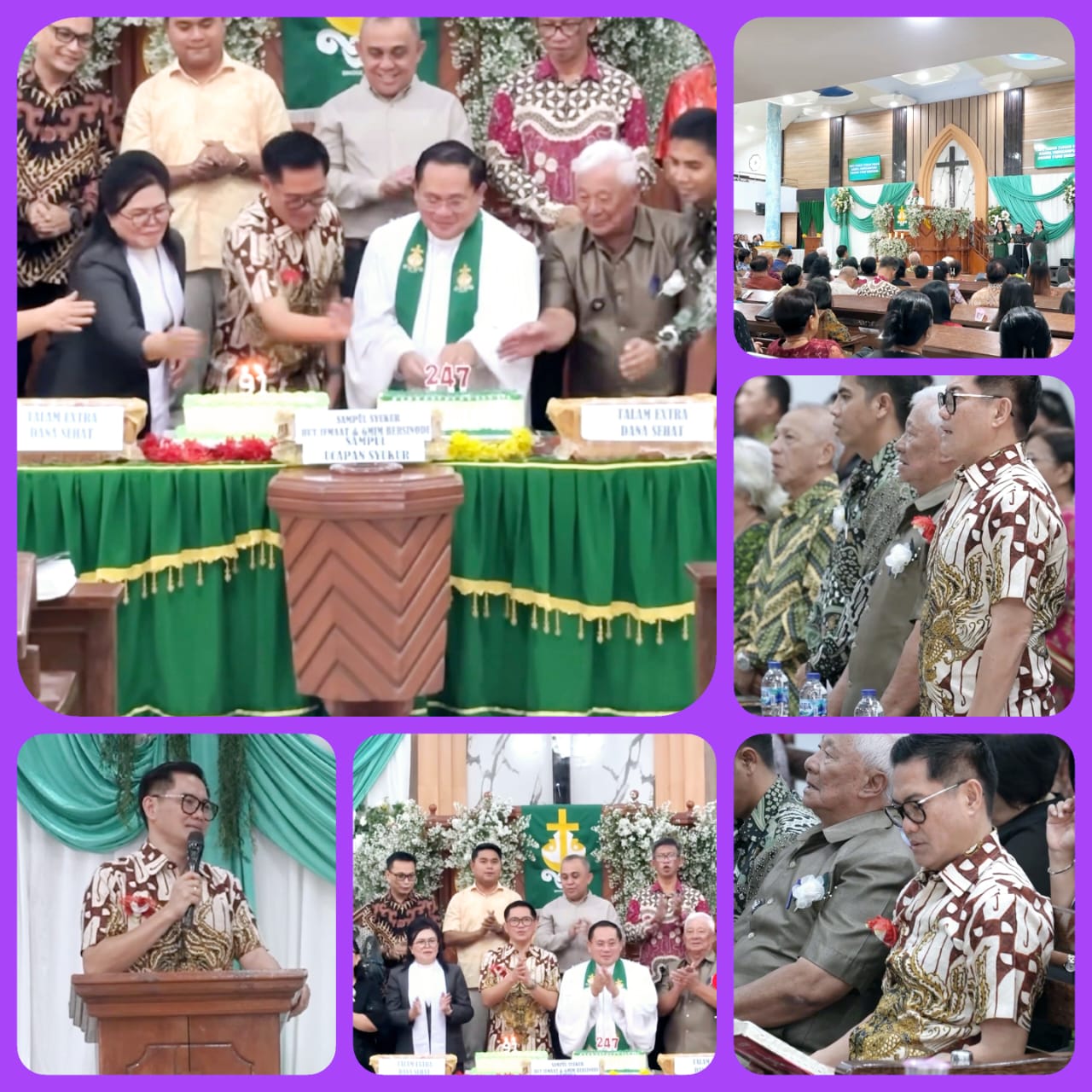 7PMNEWS.ID, MAUMBI-Bupati Minahasa Utara Pnt Joune Esau Ganda membaur bersama ratusan Jemaat GMIM Emanuel Maumbi dalam merayakan prosesi Syukur 247 Tahun berdirinya Jemaat dan 91 Tahun GMIM Bersinode.