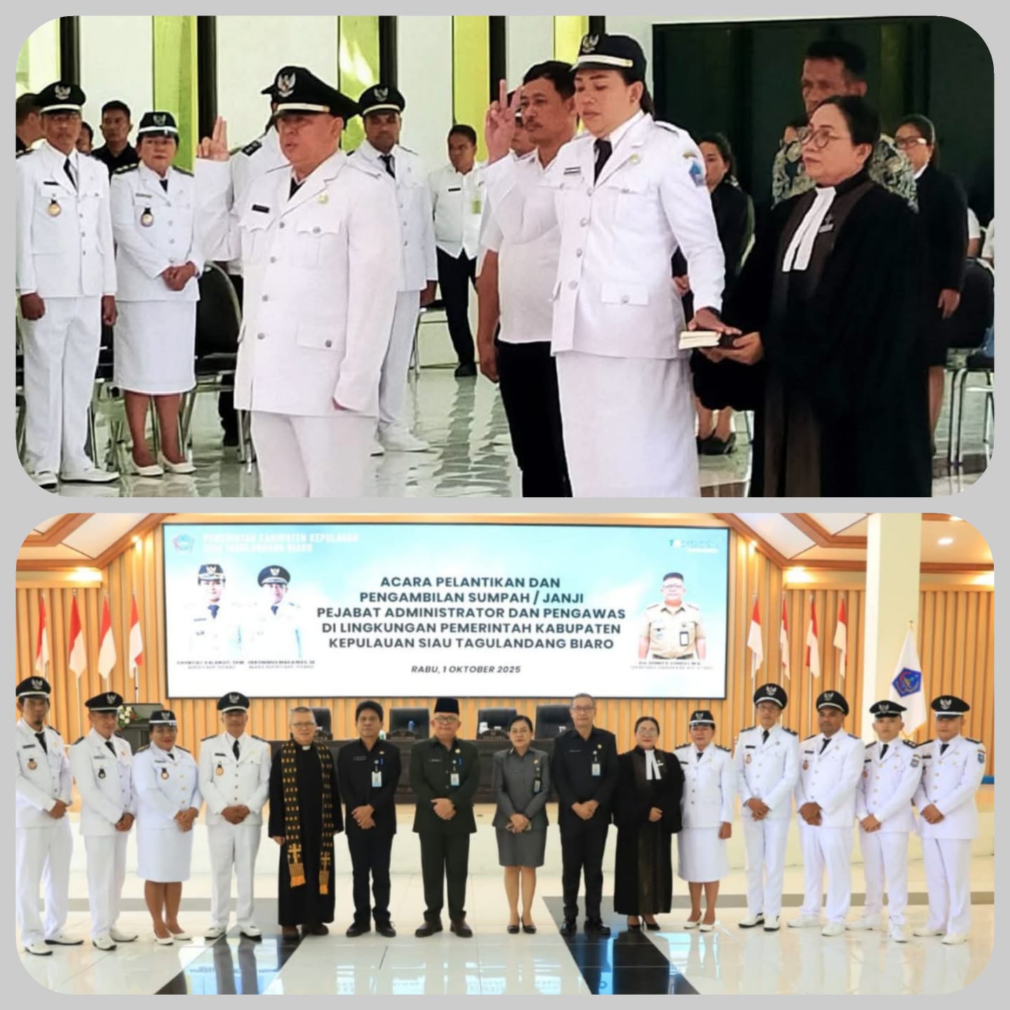 7PMNEWS.ID, SIAU-Sekretais Daerah Kabupaten Kepulauan Siau Tagulandang Biaro, Drs. Denny Kondoj, M.Si mewakili Bupati Kepulauan Siau Tagulandang Biaro memimpin Pelantikan dan Pengambilan Sumpah/Janji Pejabat Struktural dan Penjabat Kapitalau di lingkungan Pemerintah Kabupaten Kepulauan Sitaro, bertempat di Aula Kantor Bupati, Rabu (02/10).