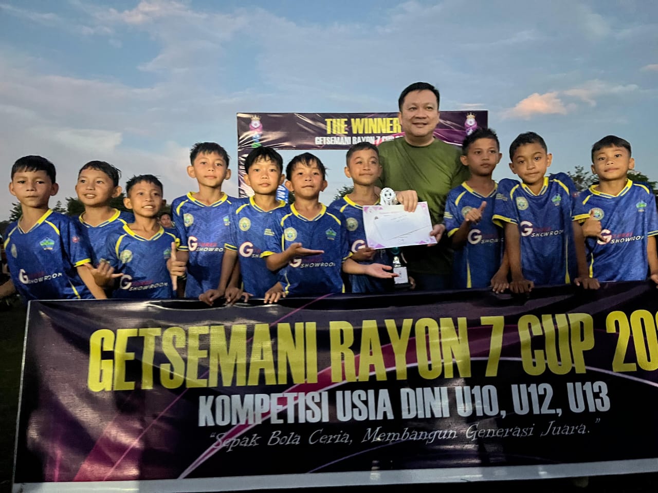 7PMNEWS.ID, BITUNG-Sepakbola Minahasa Utara terus membuat sensasi. Disaat SSB Wiraprima sukses menjadi juara tiga nasional untuk U-11 di Jakarta, kini prestasi gemilang kembali diukir SSB Indonesia Muda Minut dalam Turnamen Sepakbola Kelompok Umur Getsemani Rayon 7 Cup yang menghentak Lapangan Sepakbola Sari Cakalang Kota Bitung, Minggu (2/11).
