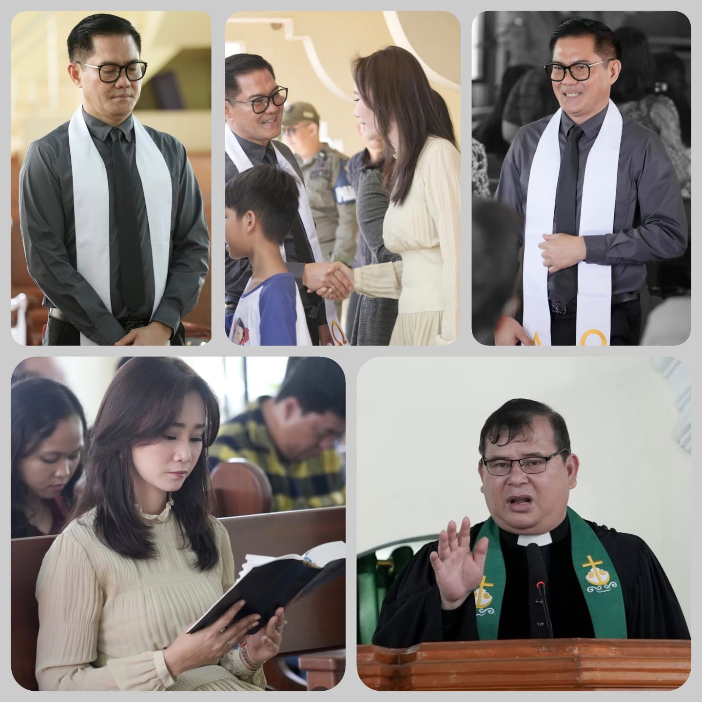 7PMNEWS.ID, KAIMA – Bupati Minahasa Utara Pnt Joune James Esau Ganda bersama istri tercinta, yang juga Ketua TP-PKK, Ny Ryzia Ganda Davega beribadah bersama di Jemaat GMIM Imanuel Kaima, Wilayah Minawerot, Minggu (9/11). Pelaksanaan Ibadah dipimpin Khadim Wilayah, Pdt Philep Walandouw, STh, yang juga Ketua BPMJ GMIM Kyrios Kawiley.