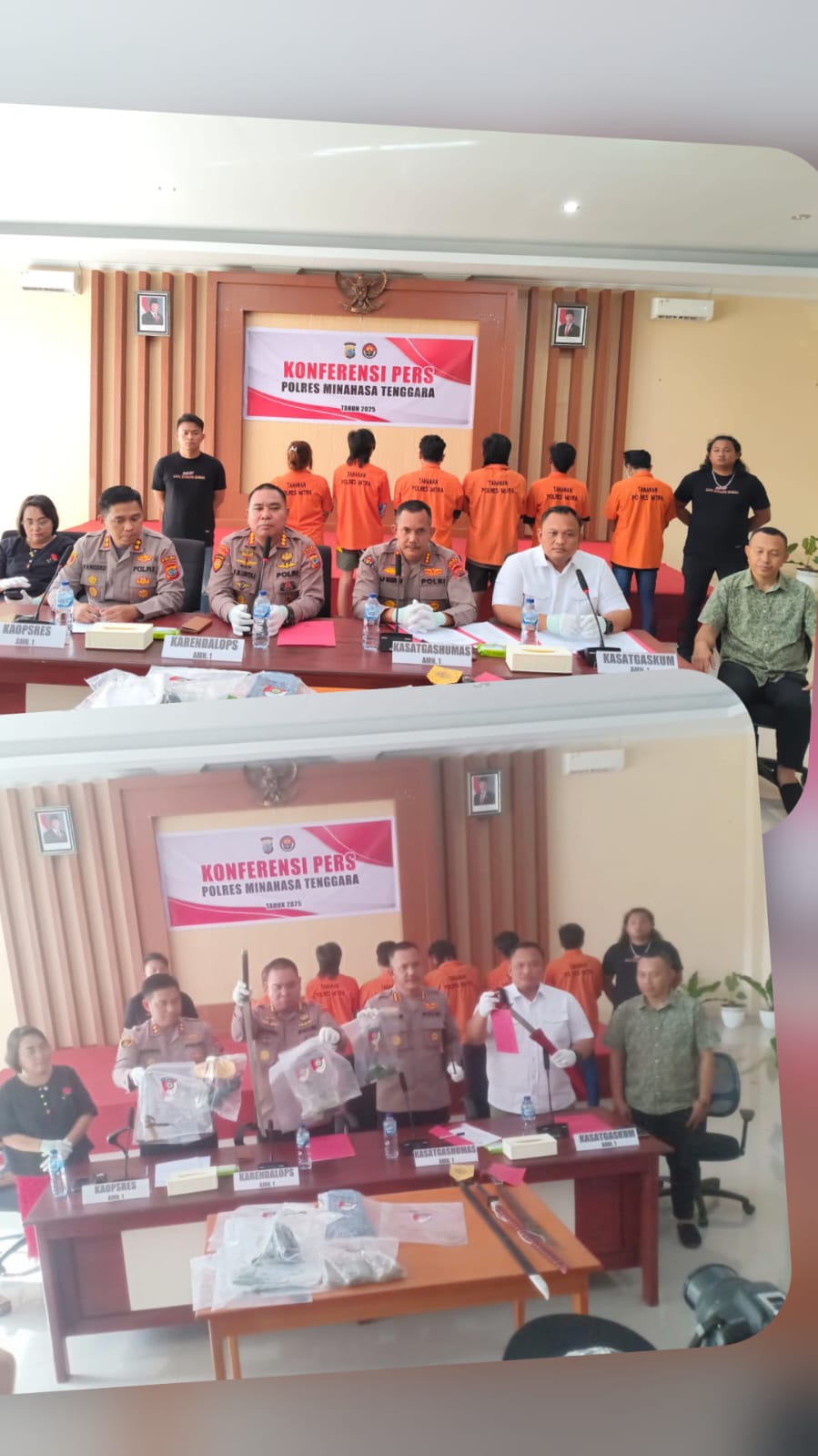 Hal ini disampaikan dalam Konferensi Pers oleh Polda dan Polres Mitra di Aula Mapolres Mitra, Selasa (02/12), dipimpin Karo Ops Sulut AKBP Ferry Raimond Ukoli, Kabid Humas Polda Sulut AKBP Alamsyah Hasibuan, Dirreskrimum Polda Sulut AKBP Suryandi, serta Kapolres Mitra AKBP Handoko Sanjaya.