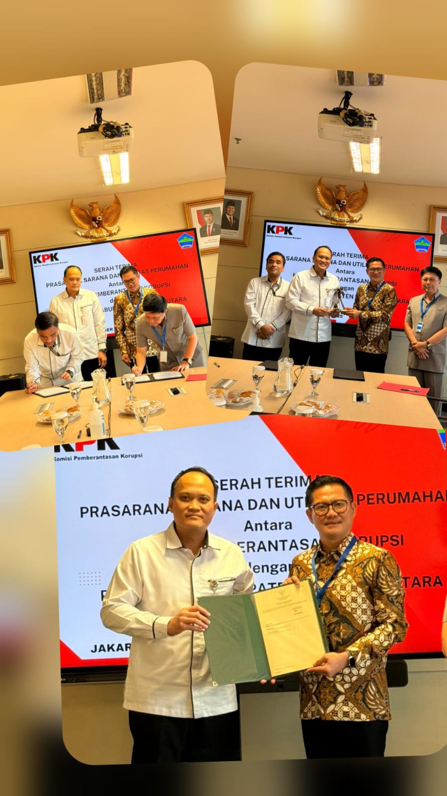 7PMNEWS.ID, JAKARTA-Komisi Pemberantasan Korupsi (KPK) menyerahkan Prasarana, Sarana dan Utilitas (PSU) kepada Pemkab Minut senilai Rp11.5 Miliar. Momen serah terima tersebut berlangsung di Gedung Merah Putih KPK, Jalan Kuningan, Jakarta, Rabu (3/12). Aset yang diserahkan Lembaga Anti Rasuah berupa tanah dan fasilitas umum seperti jalan, drainase, kolam renang, pendopo, pagar, serta infrastruktur lainnya.