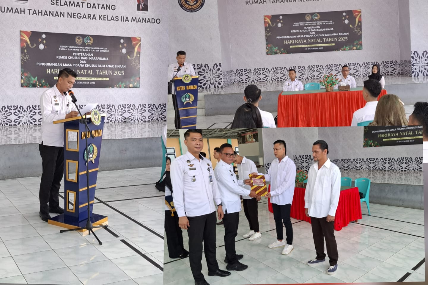 7PMNEWS.ID, MALENDENG-Suka cita Natal, 25 Desember 2025 begitu dirasakan ratusan Warga Binaan Permasyarakatan (WBP) Nasrani yang berada di Rumah Tahanan Negara Kelas IIA Manado. Pemerintah lewat Kementerian Imigrasi dan Pemasyarakatan memberikan Remisi Khusus (RK) Hari Raya Natal kepada 159 WBP Kristen di Rutan Manado berupa pengurangan pidana. 3 WBP yang menerima RK II langsung bebas setelah penyerahan remisi tersebut.