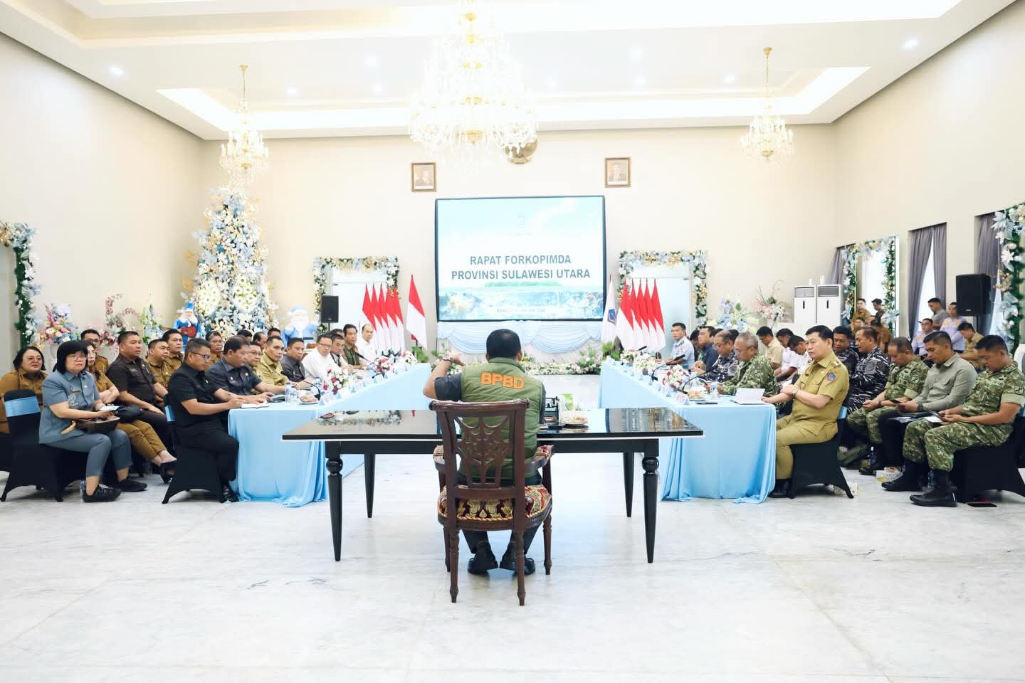 7PMNEWS.ID, MANADO-Gubenur Sulawesi Utara, Yulius Selvanus memimpin rapat bersama Forkompimda serta jajaran stakeholders guna membahas langkah antisipasi pasca bencana banjir bandang di Pulau Siau Kabupaten Sitaro, di Wisma Negara Bumi Beringin Manado, Selasa (6/1).