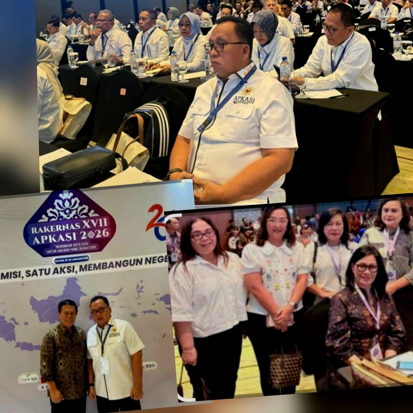 7PMNEWS.ID, BATAM-Minahasa dan Minahasa Utara bersanding apik dibalik suksesnya pelaksanaan Rakernas XVII Asosiasi Pemerintah Kabupaten Seluruh Indonesia (Apkasi) yang baru saja tuntas digelar di Ballroom Aston Hotel Batam, Kepulauan Riau, 19-21 Januari 2026. Sebagai Koordinator Wilayah Sulawesi Apaksi, Bupati Minahasa Robby Dondokambey, S.Si, didampingi Ketua TP-PKK Kabupaten Minahasa Ny. Martina W. Dondokambey Lengkong, SE, bersama Sekretaris Daerah Kabupaten Minahasa Dr. Lynda D. Watania, MM, M.Si, mampu memberikan andil dibalik lancarnya pelaksanaan Rakernas tersebut. Sementara Minahasa Utara melambung lewat peran sentral Bupati Joune Ganda yang juga Sekjen Apkasi.