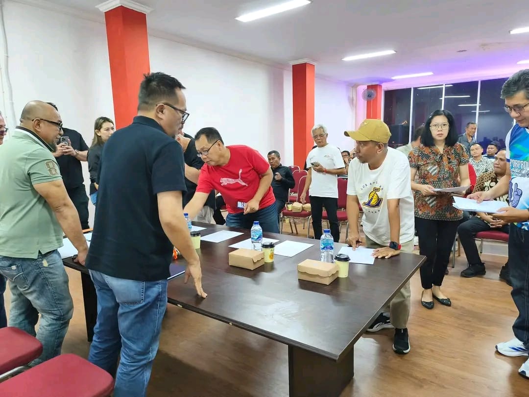 7PMNEWS, MANADO-Pengurus KONI Manado yang baru terpilih, Kamis (29/1) berkumpul di Gedung Youth Center Manado. Didepan Ketua KONI Manado, Richard Sualang, mereka beramai-ramai melakuan penandatanganan Pakta Integritas sebagai wujud komitmen bersama memajukan dunia olahraga Manado setelah dilantik.