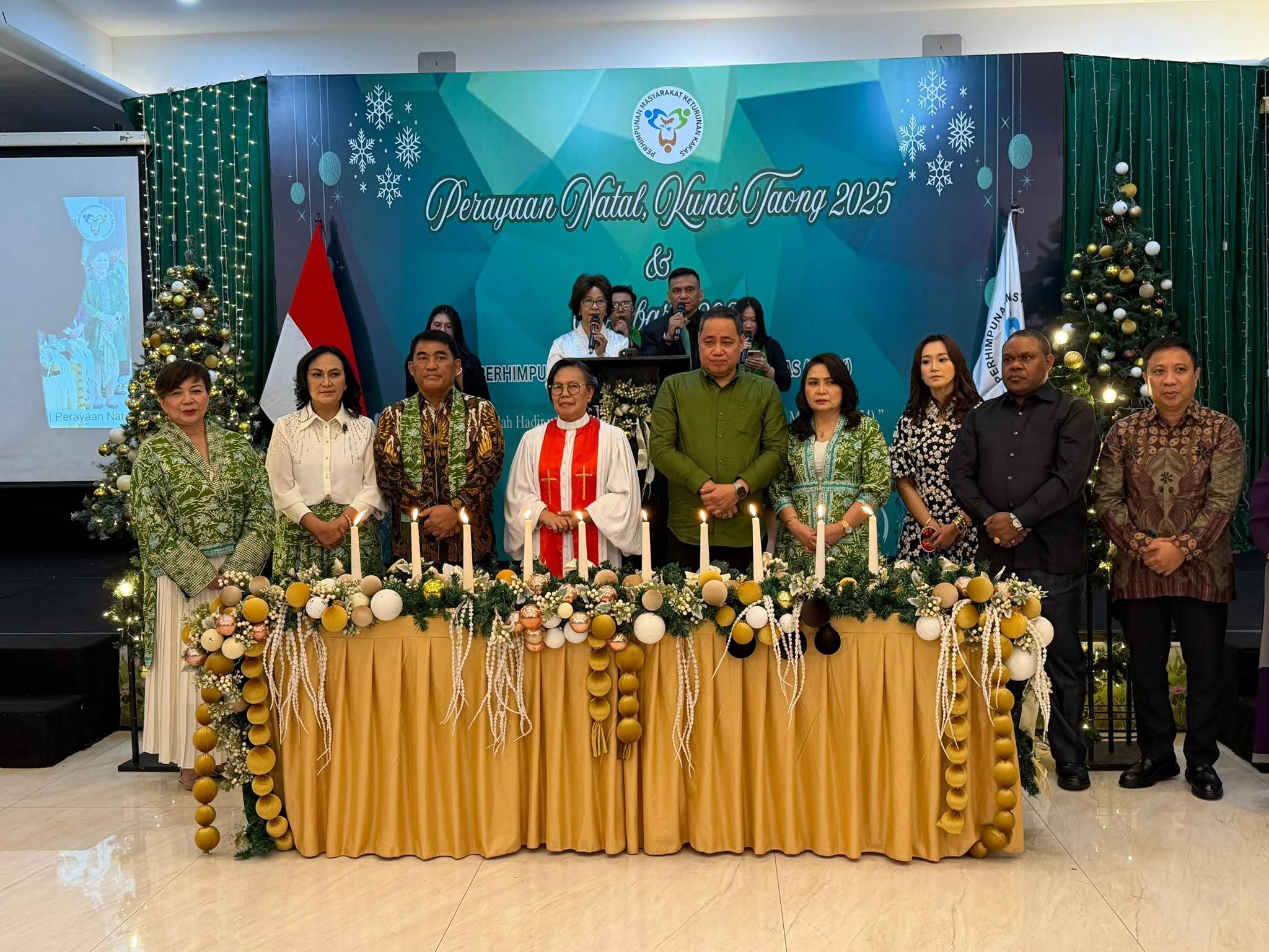 7PMNEWS.ID, JAKARTA – Gubernur Sulawesi Utara, Yulius Selvanus, SE, bersama istri, Ny. Anik Wandriani menghadiri Perayaan Natal Kunci Taon 2025 dan Tombaru 2026 Perhimpunan Masyarakat Keturunan Kakas (PMKK), yang digelar di Balai Tetap Setia, Jakarta, Jumat (30/1).