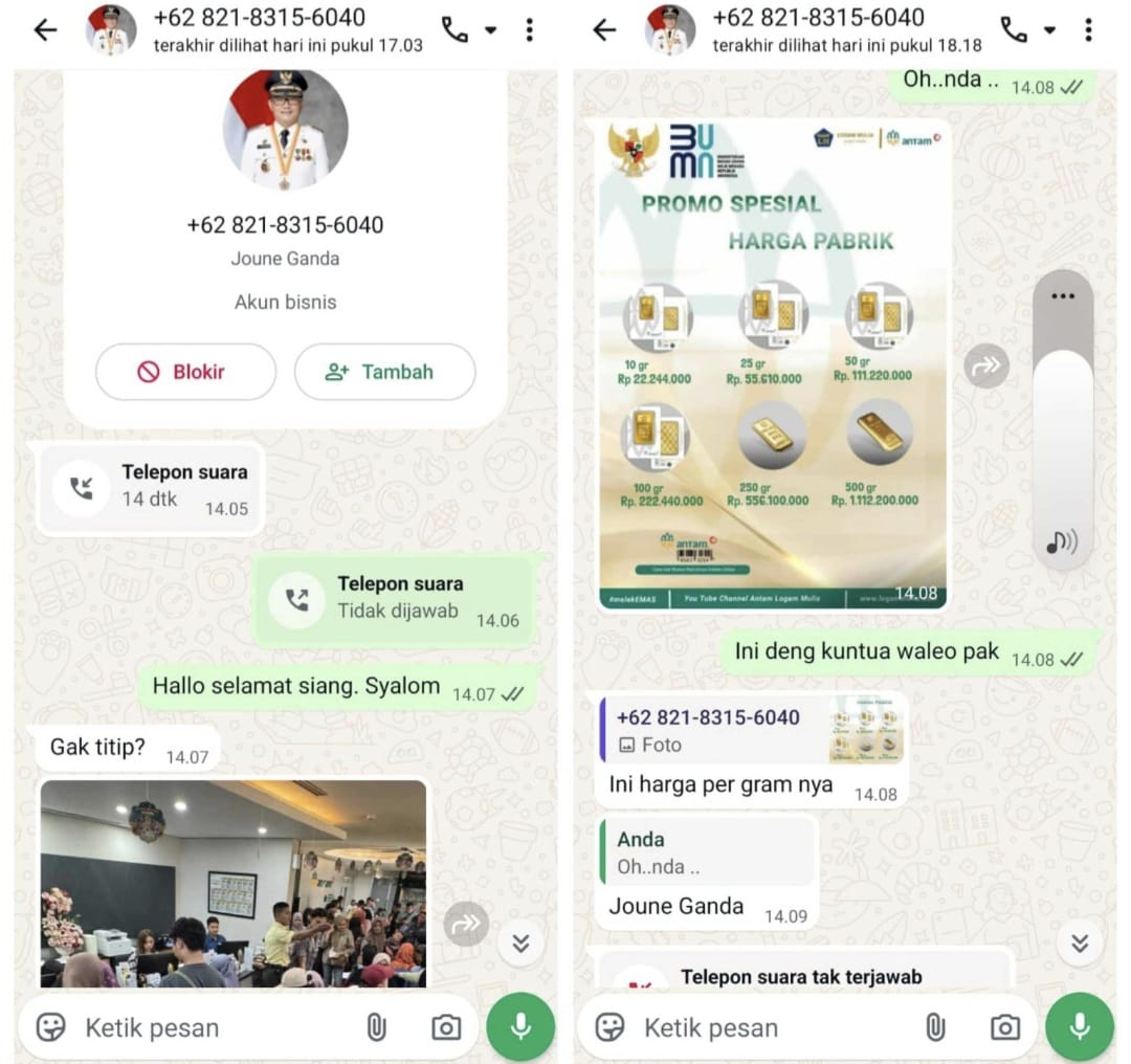 Modus tersebut terbongkar setelah seorang oknum tak dikenal menghubungi aparat desa (Hukum Tua) untuk menawarkan transaksi penjualan emas dengan mengatasnamakan bupati. Pelaku menggunakan foto profil dan nama kepala daerah untuk meyakinkan korban.