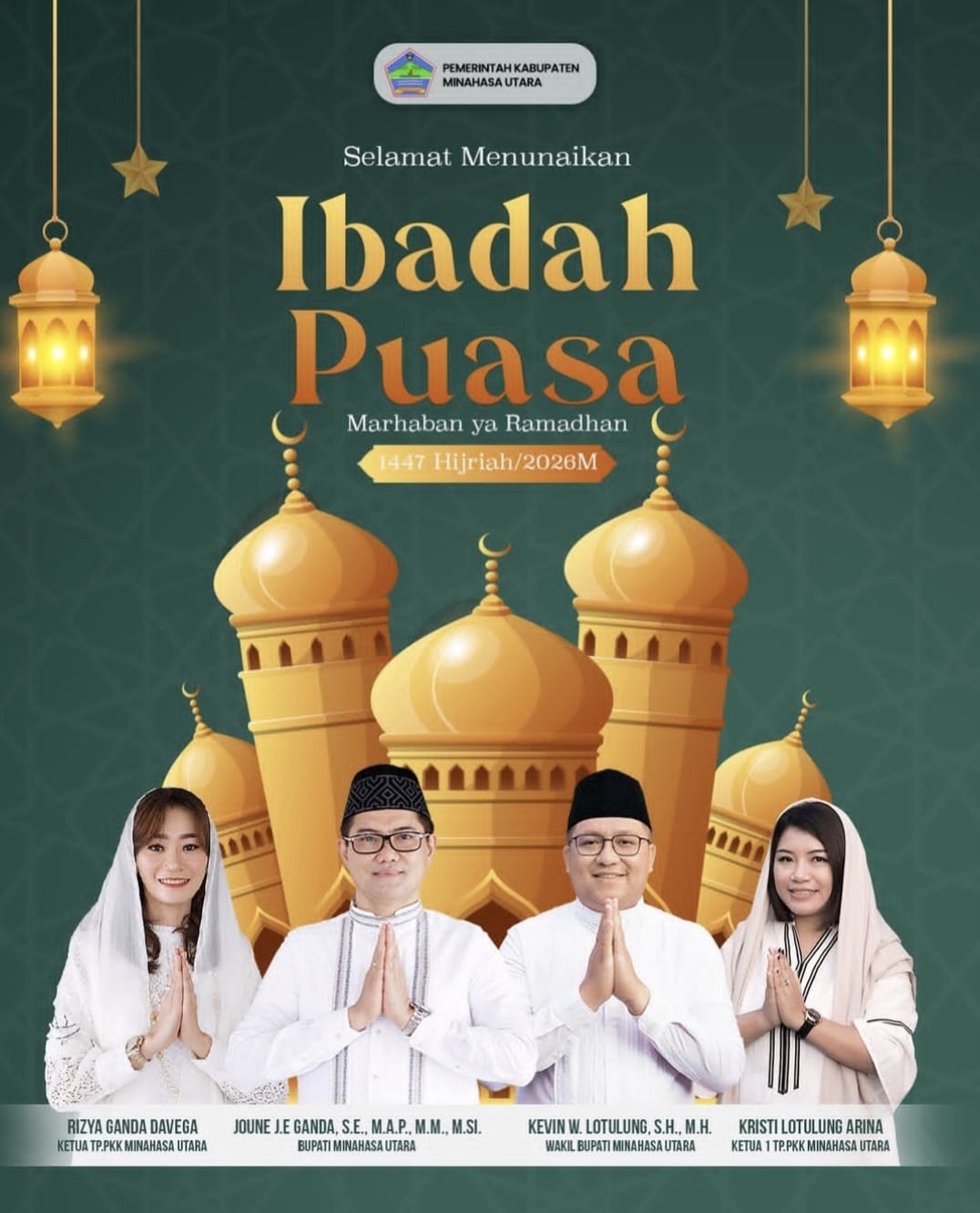 “Selamat menunailan ibadah puasa, Ramadan 1447 H I 2026 bagi umat muslim Minahasa Utara, semoga keberkahan melingkupi kita semua,” pesan Bupati Minahasa pilihan rakyat dua periode itu. *