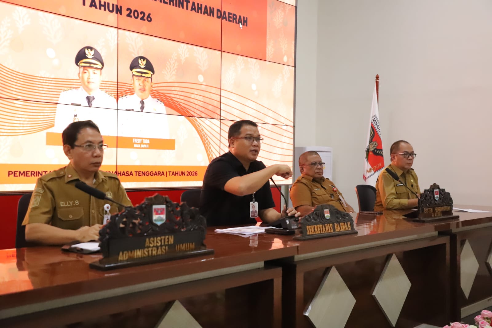 7PMNEWS.ID, RATAHAN-Sekretaris Daerah Kabupaten Minahasa Tenggara David H. Lalandos, AP, MM, memimpin Rapat Penyusunan Laporan Penyelenggaraan Pemerintahan Daerah (LPPD) Tahun Anggaran 2026 , bertempat di Lantai 3 Kantor Bupati, Selasa(24/02) Kegiatan yang diprakarsai oleh Bagian Pemerintahan Setdakab Mitra ini bertujuan untuk menyamakan persepsi dalam penyusunan laporan yang akuntabel dan tepat waktu.