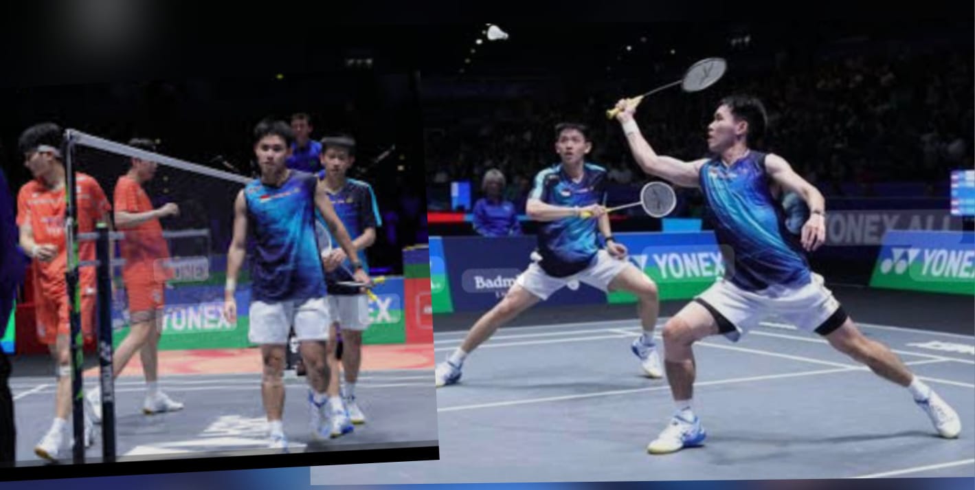 7PMNEWS.ID, BIRMINGHAM-Ganda putra Indonesia, Raymond Indra/Nikolaus Joaquin gagal menembus final bulutangkis All England 2026. Namun, the rissing star yang baru berusia 20 tahun dan 21 tahun membuat jagad bulutangkis dunia heboh dengan memberikan perlawanan sengit kepada juara dunia sekaligus unggulan pertama dari Korsel, Kim Won Ho/Seo Seung Jae. Nyaris merebut set pertama, Raymond/Nikolaus akhirnya takluk lewat straight set dari pemilik 13 gelar WBF 2025 itu dengan skor 19-21, 13-21 di semifinal All England, yang berlangsung di Utilita Arena Birmingham, Inggris, Minggu (8/3) pagi.