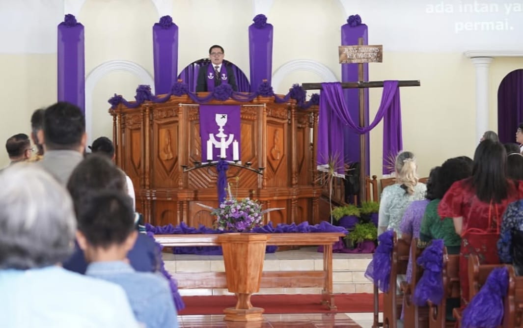 “Ibadah Minggu Sengsara menjadi momentum bagi kita semua untuk merenungkan pengorbanan Tuhan sekaligus memperbaharui iman dan komitmen kita dalam menjalani kehidupan sebagai orang percaya,” ungkap Pnt. Joune Ganda di hadapan jemaat.