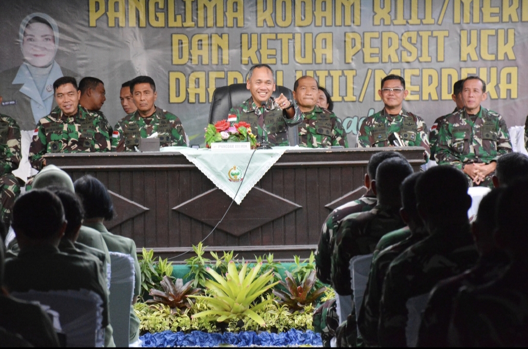 Turut hadir dalam kegiatan itu sejumlah pejabat utama Kodam XIII/Merdeka, di antaranya Kasdam Brigjen TNI Yustinus Nono Yulianto, Irdam Brigjen TNI Esy Suharto, Kapoksahli Pangdam Brigjen TNI Saptono Syiwarudi, serta Danrem 131/Santiago Brigjen TNI Martin Susilo Martopo Turnip bersama jajaran.