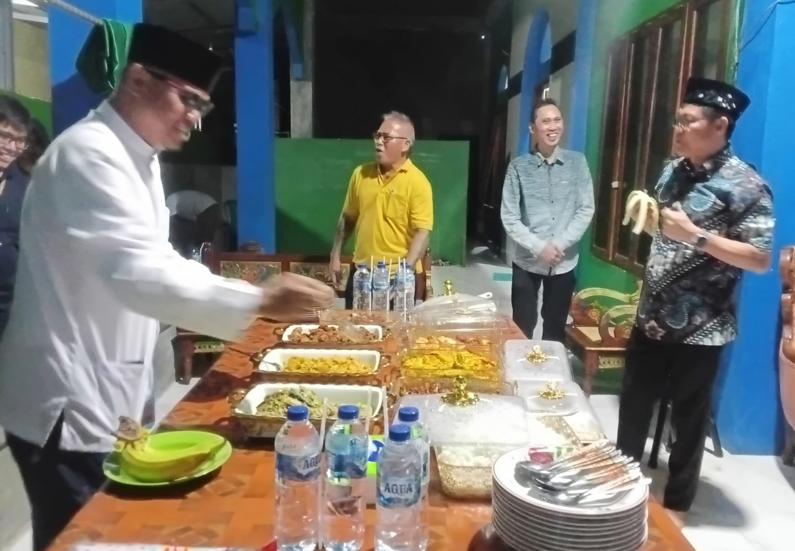 Disambut Imam Masjid Al Taqwa Paniki Atas Yusuf Manikam tampak Bupati Dr Joune membaur bersama di tengah Jamaah menikmati hidangan buka puasa,