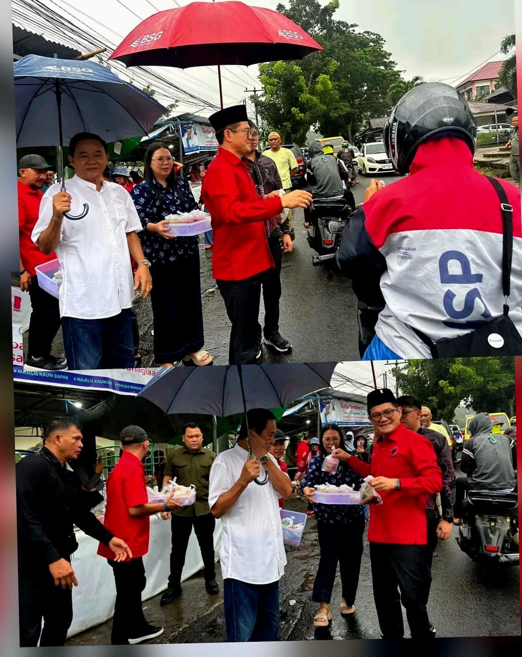 7PMNEWS.ID, AIRMADIDI-Partai Demokrasi Indonesia Perjuangan (PDIP) Minahasa Utara kembali turun menyapa warga khususnya kepada umat Muslim yang tengah menjalani Ibadah Puasa. Kepedulian tersebut dilakukan dengan berbagi Takjil di seputaran Airmadidi, Minut, Minggu sore (15/3). Aksi berbagi itu melibatkan langsung Ketua DPC PDIP Minut, Dr Joune Ganda dan Wakil Ketua PDIP Sulut, Berty Kapojos.