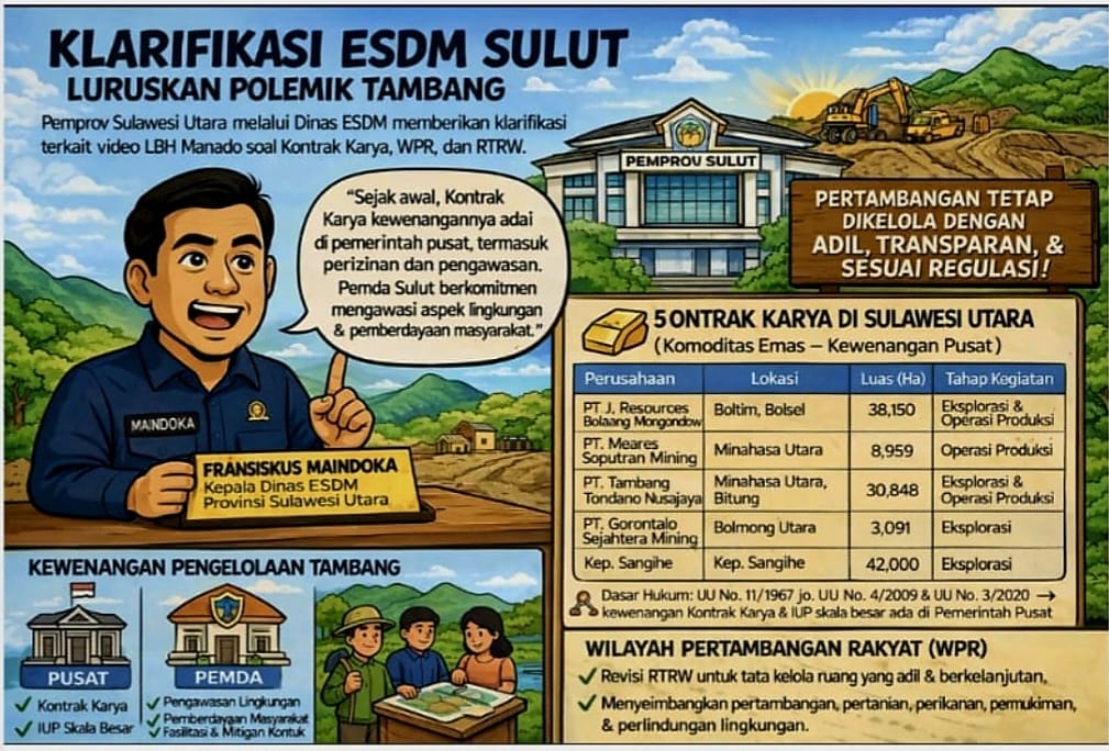 Dengan klarifikasi ini, diharapkan masyarakat mendapatkan informasi yang utuh dan berimbang terkait pengelolaan sektor pertambangan di Sulawesi Utara.*