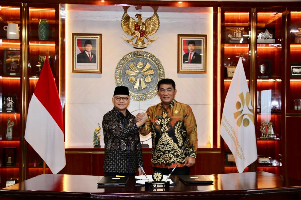 7PMNEWS.ID, JAKARTA-Momen bersejarah buat Sulawesi Utara terukir Jumat (24/4) di Kantor Kementerian BP2MI Jakarta. Gubernur Yulius Selvanus bersama Menteri Perlindungan Pekerja Migran Indonesia Muktharudin, secara resmi menandatangani Nota Kesepahaman dan Perjanjian Kerja Sama yang menegaskan komitmen kuat Pemerintah Provinsi dalam melindungi dan meningkatkan kualitas Pekerja Migran Indonesia asal Sulawesi Utara.