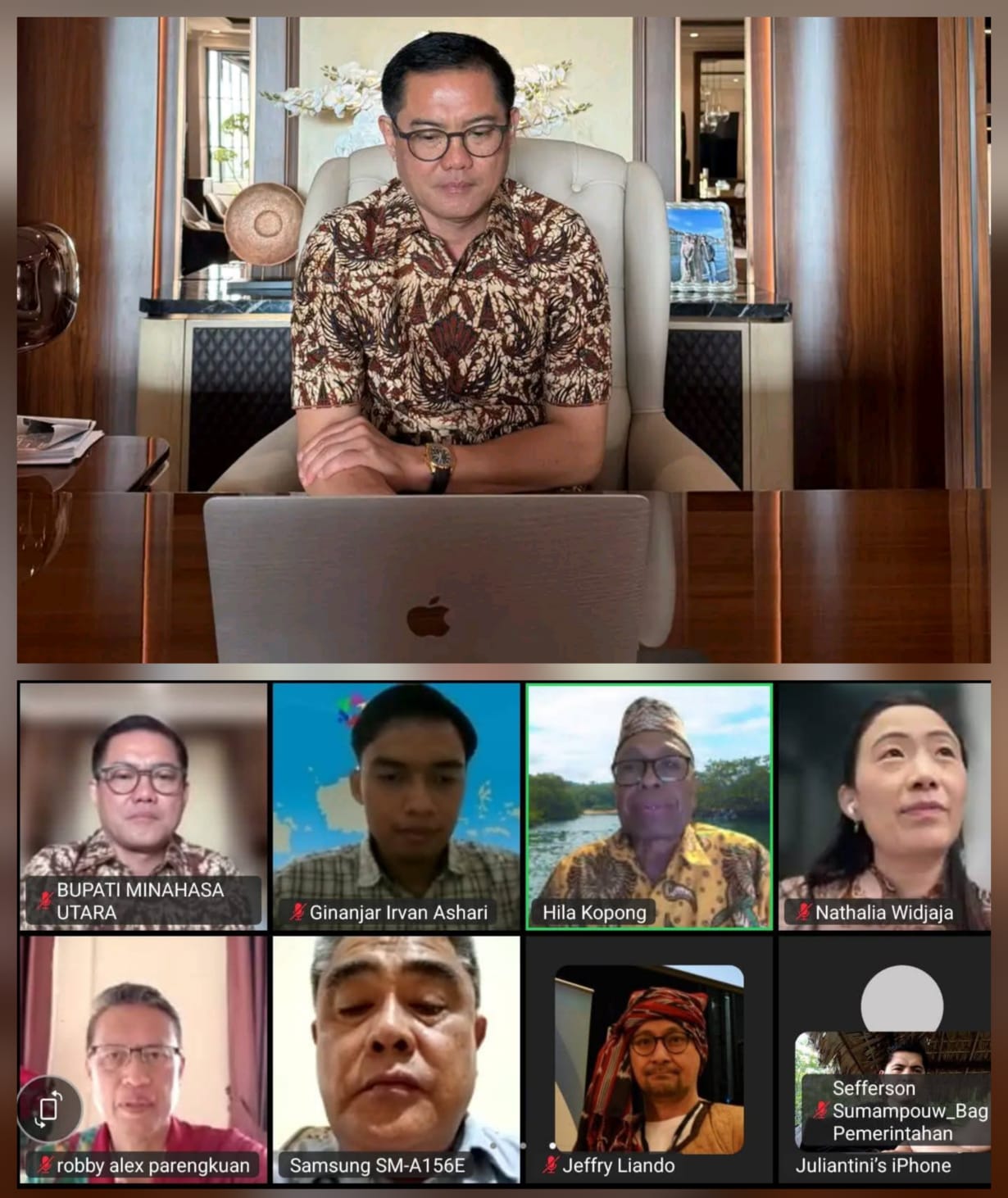 Dalam pertemuan virtual bersama Indonesian Diaspora Network Global (ADN Global), akademisi, dan jajaran Pemkab Minahasa Utara, Jumat (24/4), Bupati Joune Ganda menegaskan pentingnya kolaborasi lintas negara untuk memperkuat pembangunan desa berkelanjutan sekaligus membuka akses pasar internasional bagi produk lokal.